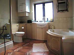 appointed bathroom with corner jacuzzi bath and a separate large shower