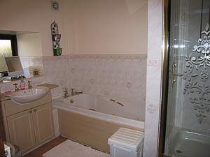 has a jacuzzi bath and a separate large shower